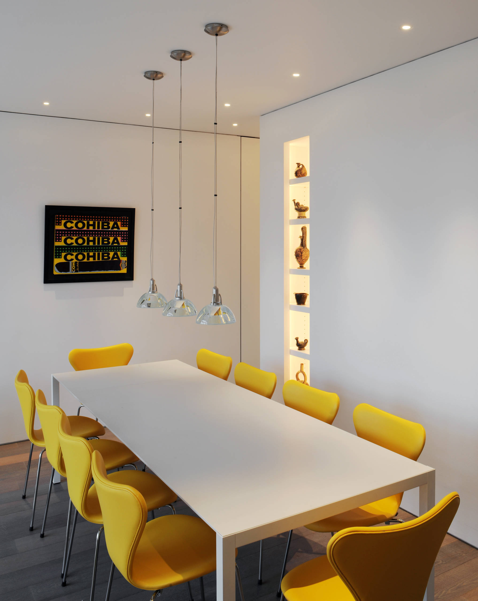 La elección de una versión en piel oscura de las Series 7 contribuye a reforzar la sofisticación del ambiente.