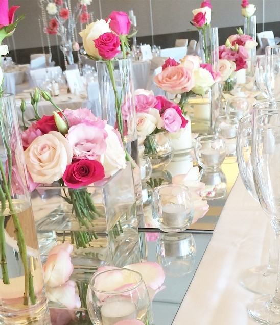 La base de la mesa, de espejo, te ayudará a multiplicar la sensación de luminosidad, gracias al reflejo de todos los elementos que coloques encima. Si lo combinas con velas, tanto en taco, como pequeñas tea-light o flotantes, el resultado será espectacular.