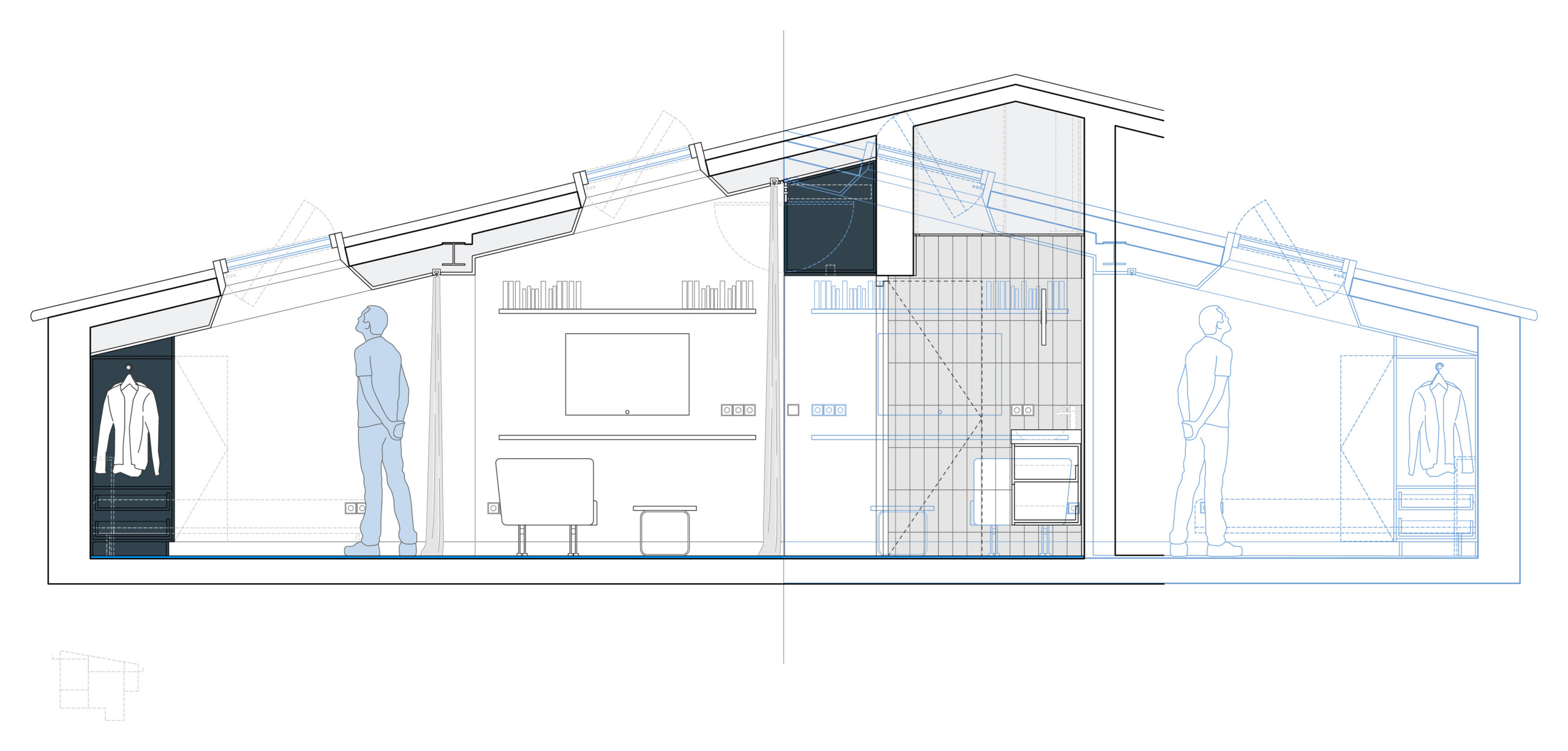 Sección de la buhardilla Beach House, de Gon Arquitects