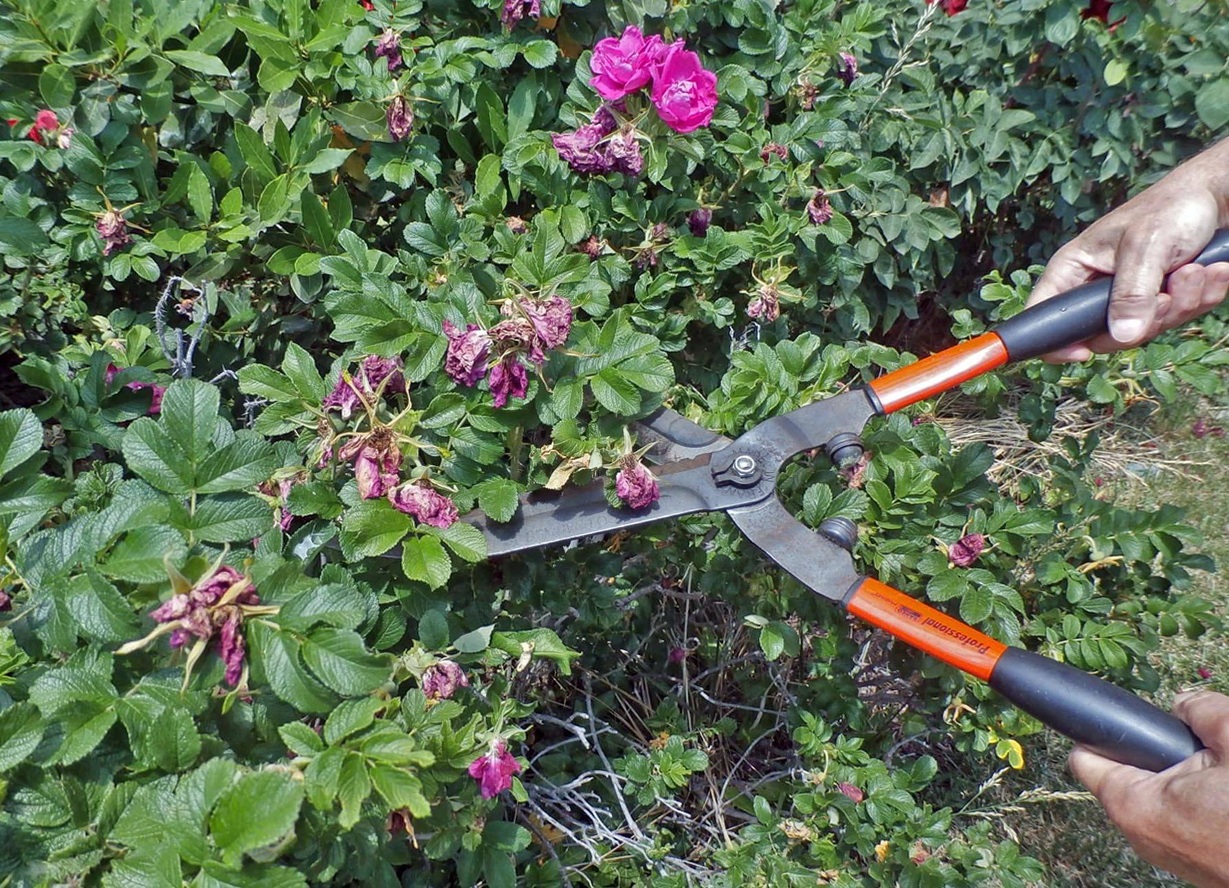 La palabra clave para conseguir segundas y terceras floraciones de las rosas en el jardín (lo que se denomina en el argot “remontancia") es podar los rosales tras la floración. Se trata de eliminar en todo momento las flores marchitas e, incluso, los ovarios fecundados si ya se hubieran formado. Es una nueva poda a la que sometemos a nuestras rosas, aparte de la general de salida de invierno. Herramientas necesarias: tijeras, de una y dos manos.