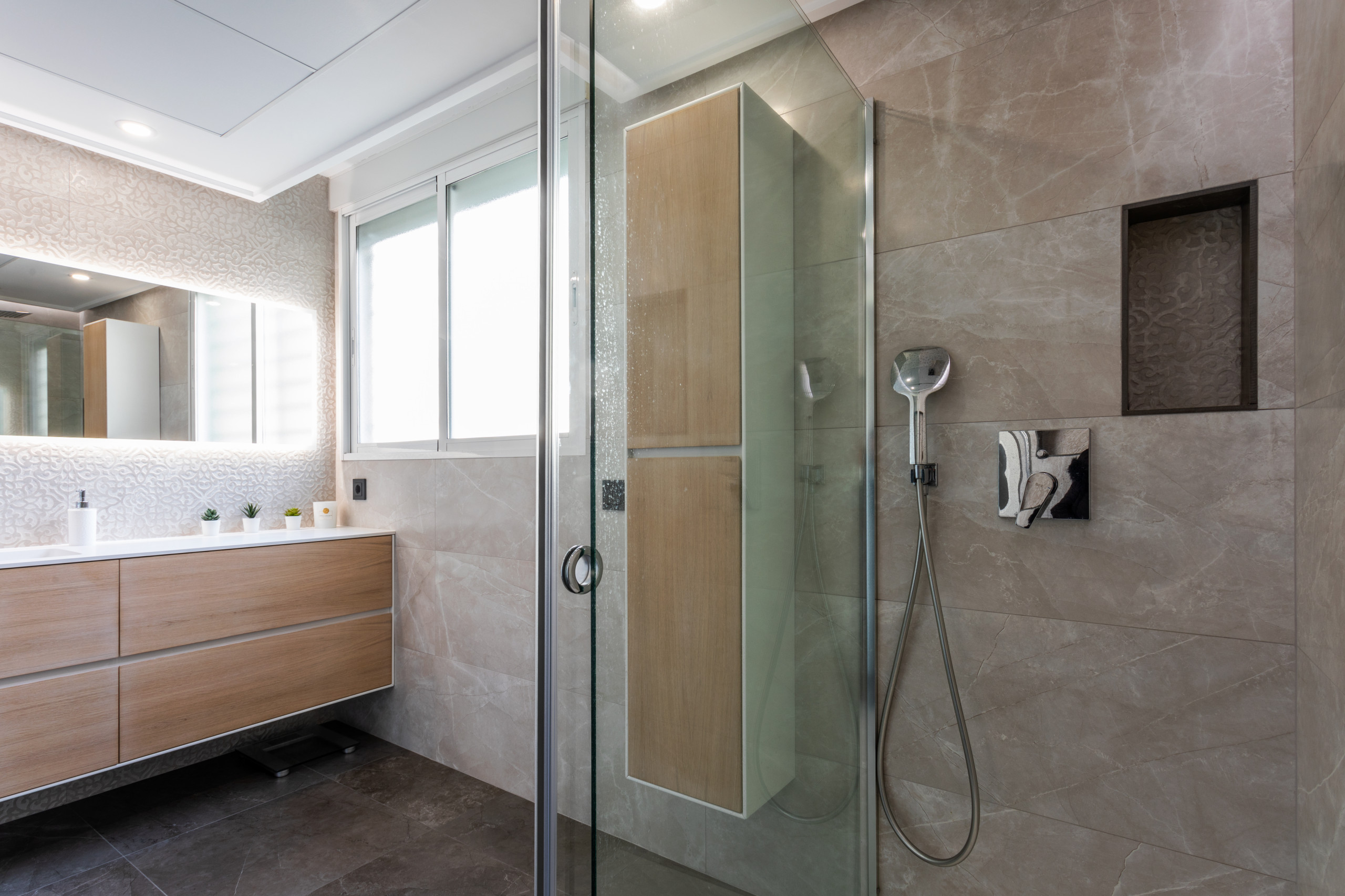 En muchas ocasiones las hornacinas en la ducha o bañera, que encarecen inevitablemente la parte de la albañilería, ayudan a que el uso del baño sea mucho más cómodo; también, quedan más integradas que baldas añadidas a posteriori. Sin duda son un pequeño capricho, pero transforman un baño y merece la pena dedicarle algo de presupuesto.