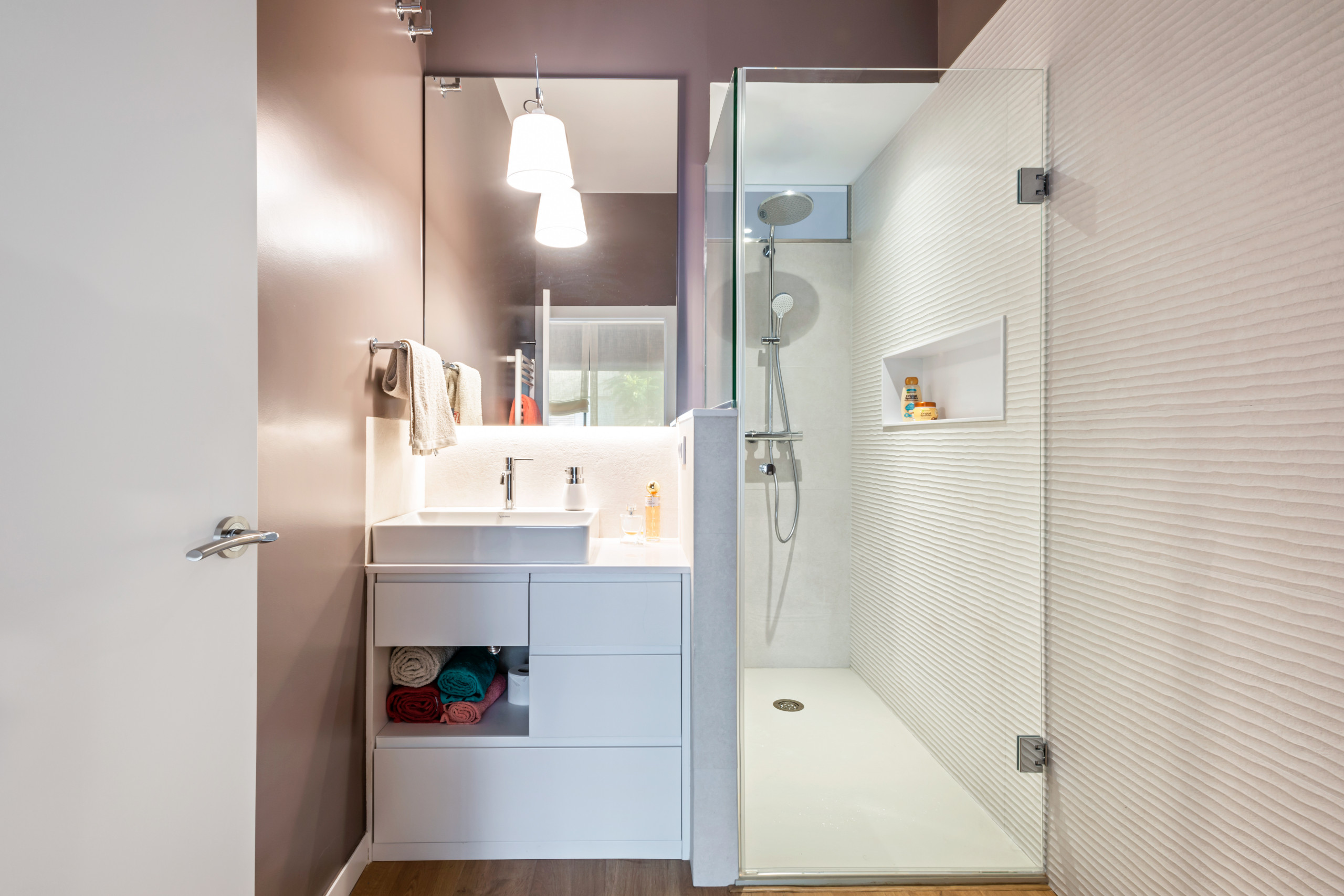 La iluminación es importante en el cuarto de baño y con un presupuesto no muy elevado se puede iluminar bien. “La iluminación debe estar bien planteada. Para nosotros es impensable solucionar un baño proponiendo un único punto de luz. Hay luz general, luz de cortesía y luz de espejo: de esta forma, el uso del baño es agradable en cada situación. En el planteamiento no ahorraríamos, sin embargo, buscaríamos que la luminaria no fuera excesivamente cara”, reflexiona Andrés.