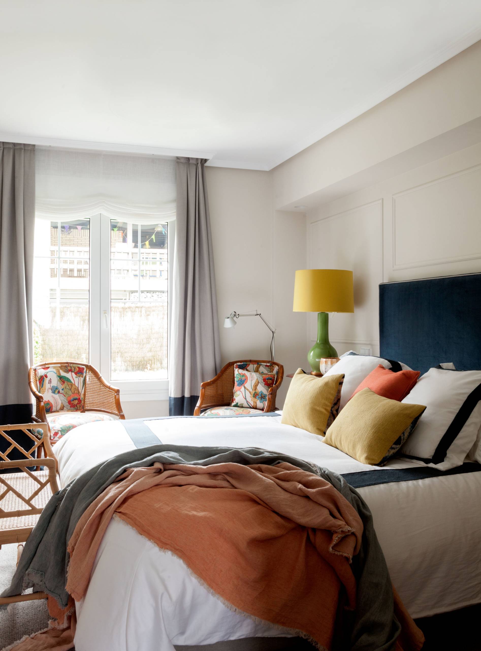 El color azul en su tono más intenso aporta profundidad a los dormitorios pequeños y un punto moderno a los clásicos.