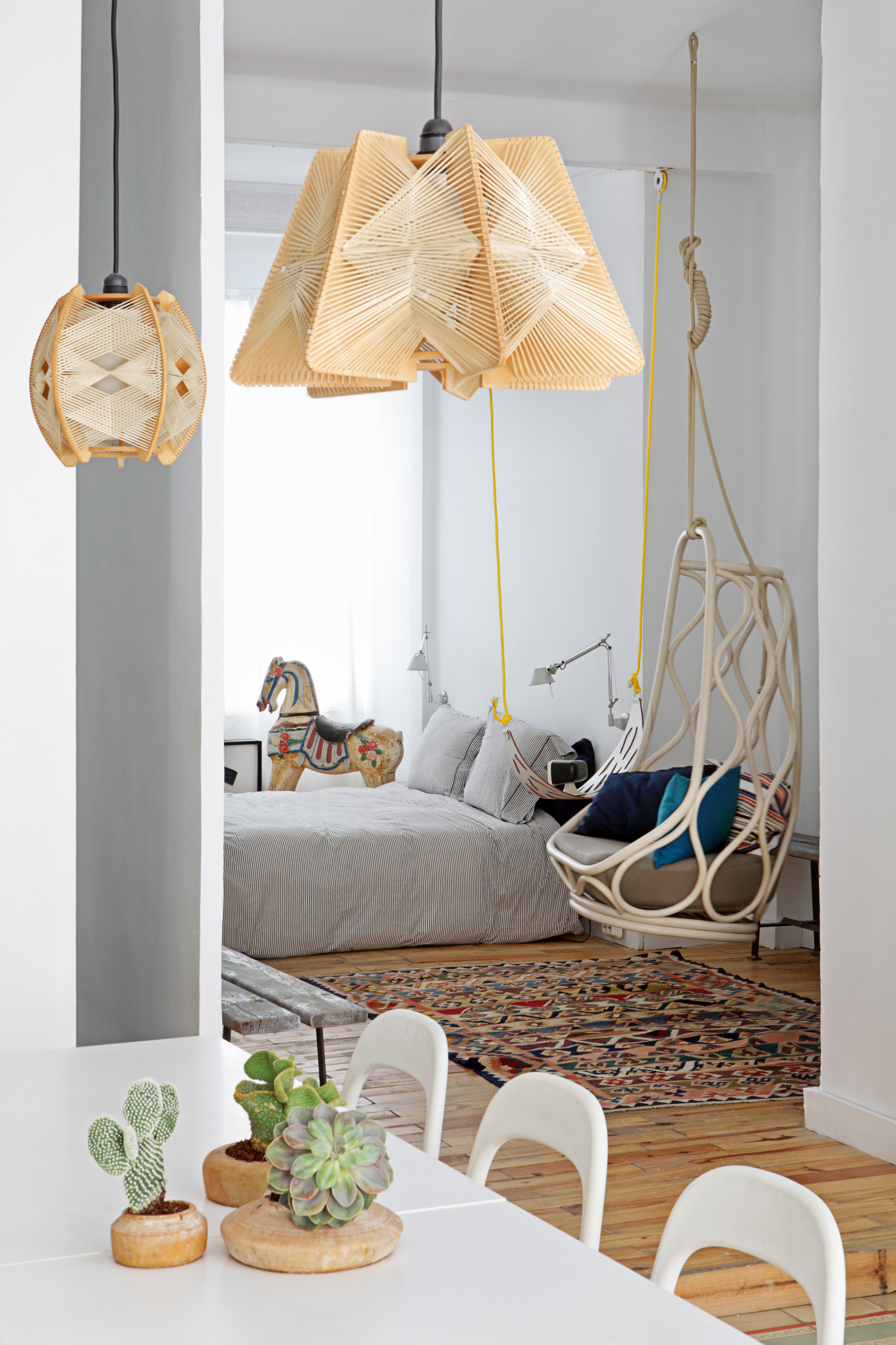 Y como decíamos, no hace falta atiborrar los ambientes con piezas realizadas con fibras naturales. Basta, simplemente, con dar ciertas pinceladas en lugares estratégicos, con elementos que pueden ser tan protagonistas como un par de sillas, una mesa de comedor o, bien, piezas menos voluminosas como cestas para almacenaje, cojines o alfombras de paso.
