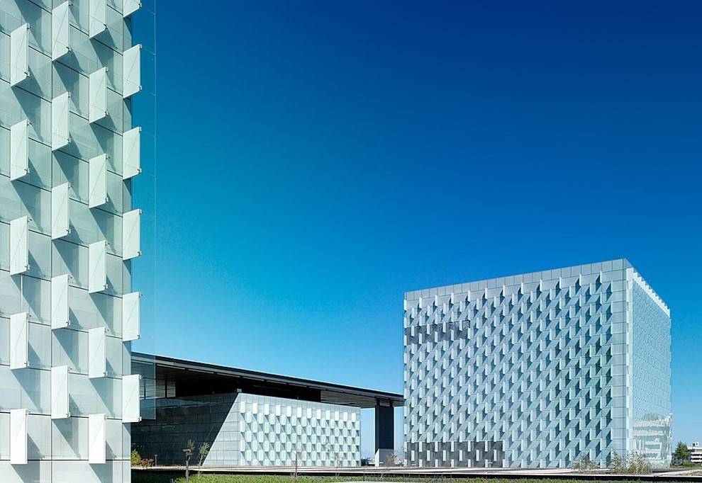 También podemos jugar con la nitidez y el enfoque, por ejemplo empleando objetivos o accesorios que nos permitan cambiar el plano de enfoque. Algo común en fotografía de bodegón publicitario pero infrecuente en la de arquitectura; quizá por la apariencia de maqueta que le confiere a la foto, o quizá porque puede llamar más la atención el aspecto técnico de la toma que el edificio.
