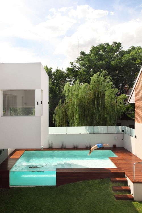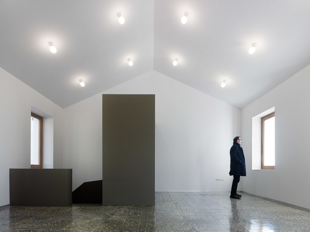 El peso a veces se consigue equilibrar con gestos mínimos. Un simple punto rojo en una escena en la que no hay nada más de ese color puede compensar la masa del volumen de la primera planta de esta vivienda.
