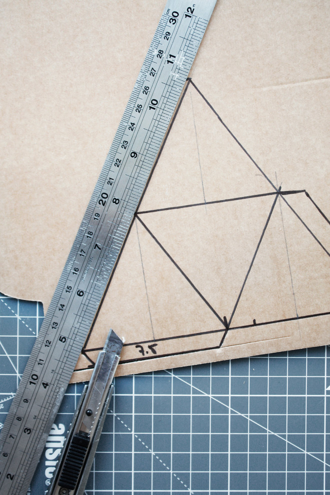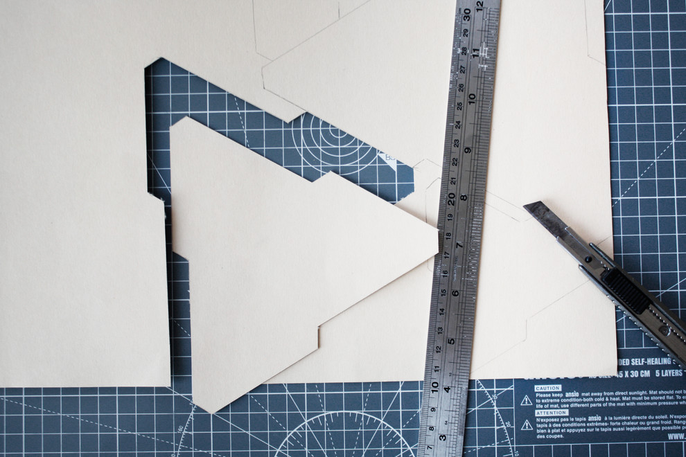 Ahora, corta la plantilla con un cúter y la ayuda de una regla. De nuevo, trabaja con precisión. Es muy importante para cuando toque pegar los lados.