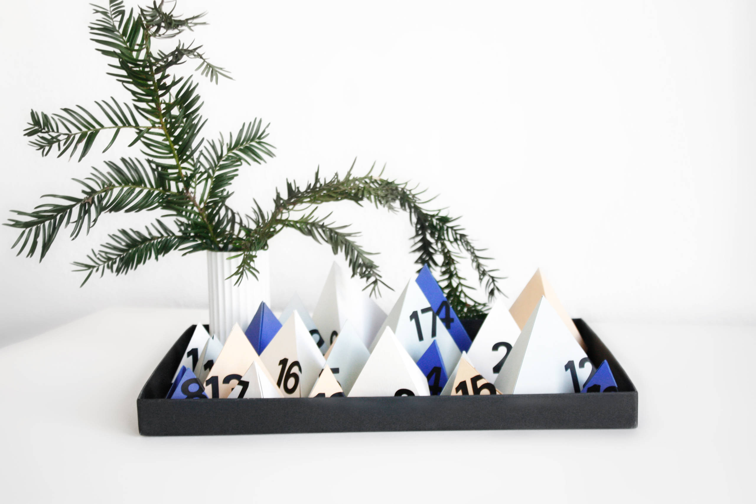 En lugar de los típicos con puertecitas, en este calendario de adviento los los dulces se esconden en 24 pirámides.
