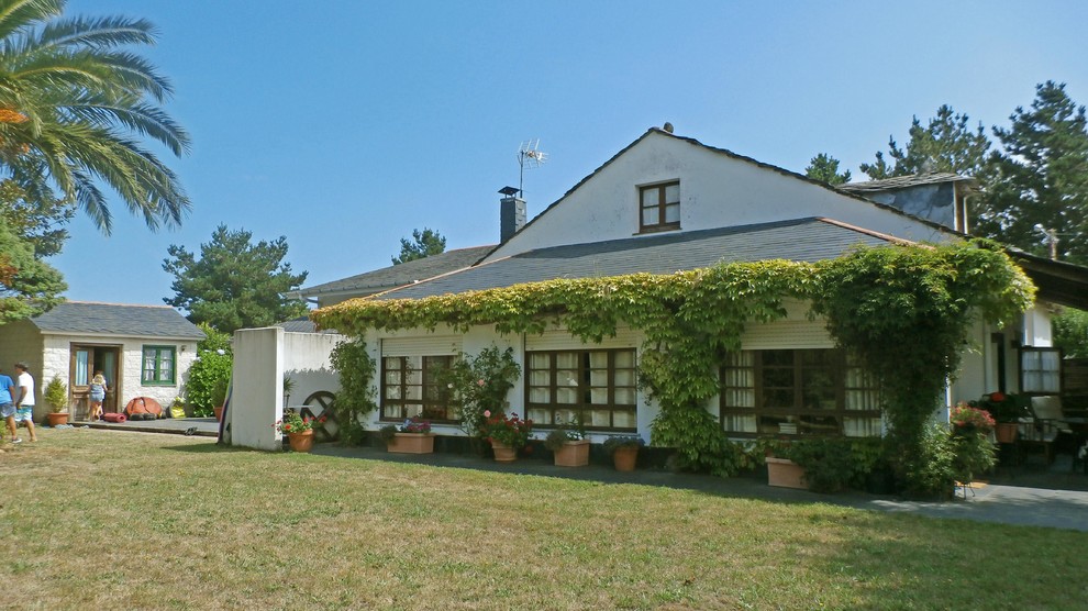 La fachada de la casa principal, que cuenta con 4 habitaciones, aparece tapizada por dos especies trepadoras que coexisten a las mil maravillas: el jazmín español (Jasminum officinalis) y la parra virgen de tres puntas (Parthenocissus tricuspidata).