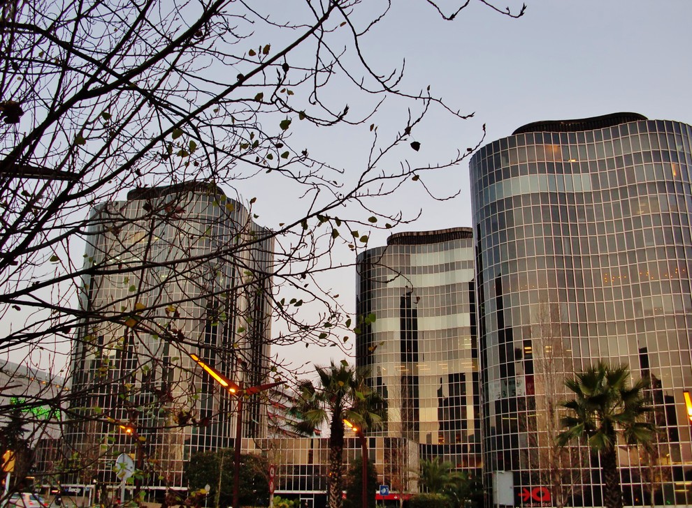 Los edificios Trade son un conjunto de cuatro torres de oficinas unidas por un basamento de servicios comunes. La respuesta a la ciudad y a la densa vía circulatoria vecina es la de la forma curva, ameboide en este caso, que evita las vistas directas y que crea interesantes espacios intermedios y perspectivas inusuales en la ciudad.