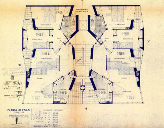 A la dificultad de dar cabida en un terreno tan pequeño el programa requerido, Coderch responde con unas geometrías no ortogonales que permiten que todas las habitaciones tengan soleamiento y ventilación. El mobiliario se estudia con precisión para responder a las necesidades de las familias.