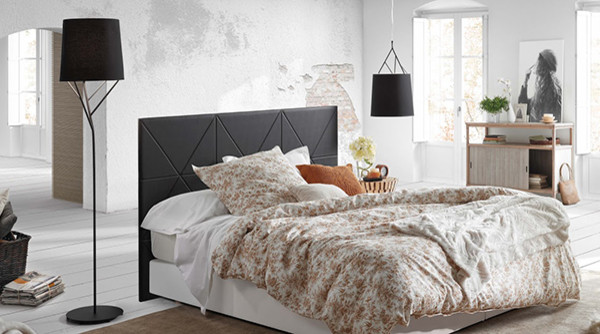 En estancias espaciosas, las lámparas de pie son un buen complemento a la iluminación general que permitirá generar una atmósfera más íntima cuando sea necesario. Esta opción confiere un gran protagonismo a la luminaria así que es importante que el modelo encaje con el estilo del dormitorio porque no pasará desapercibido. En cuanto a las pantallas, lo mejor es elegirlas opacas, de tela, papel o vidrio matizado, ya que filtran la luz creando una atmósfera más íntima. Éstas son de Faro Barcelona.