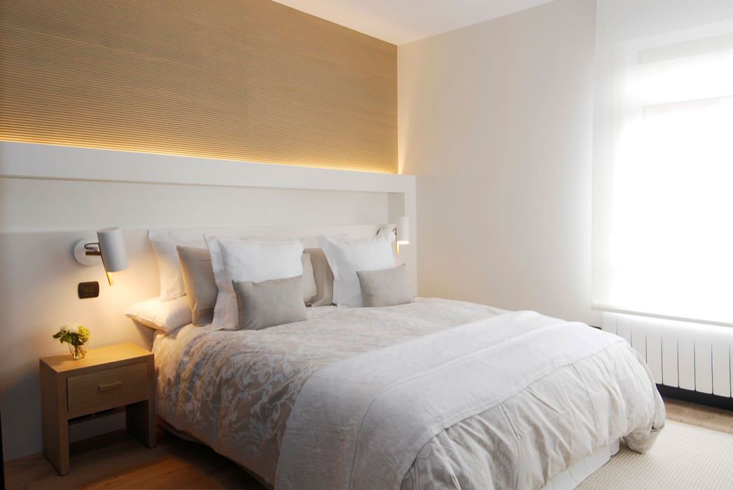 Leer, elegir la ropa del día o maquillarse son solo algunas de las actividades que se realizan a menudo en el dormitorio y que requieren de una iluminación puntual, que aporte mucha visibilidad y la mejor reproducción cromática posible sin ser excesivamente potente. Como se trata de una iluminación muy específica, se debe diseñar en función de la actividad a la que se vaya a destinar. Así, por ejemplo, para leer en la cama, los apliques situados en la pared a ambos lados de esta o en el cabecero son uno de los recursos más habituales.