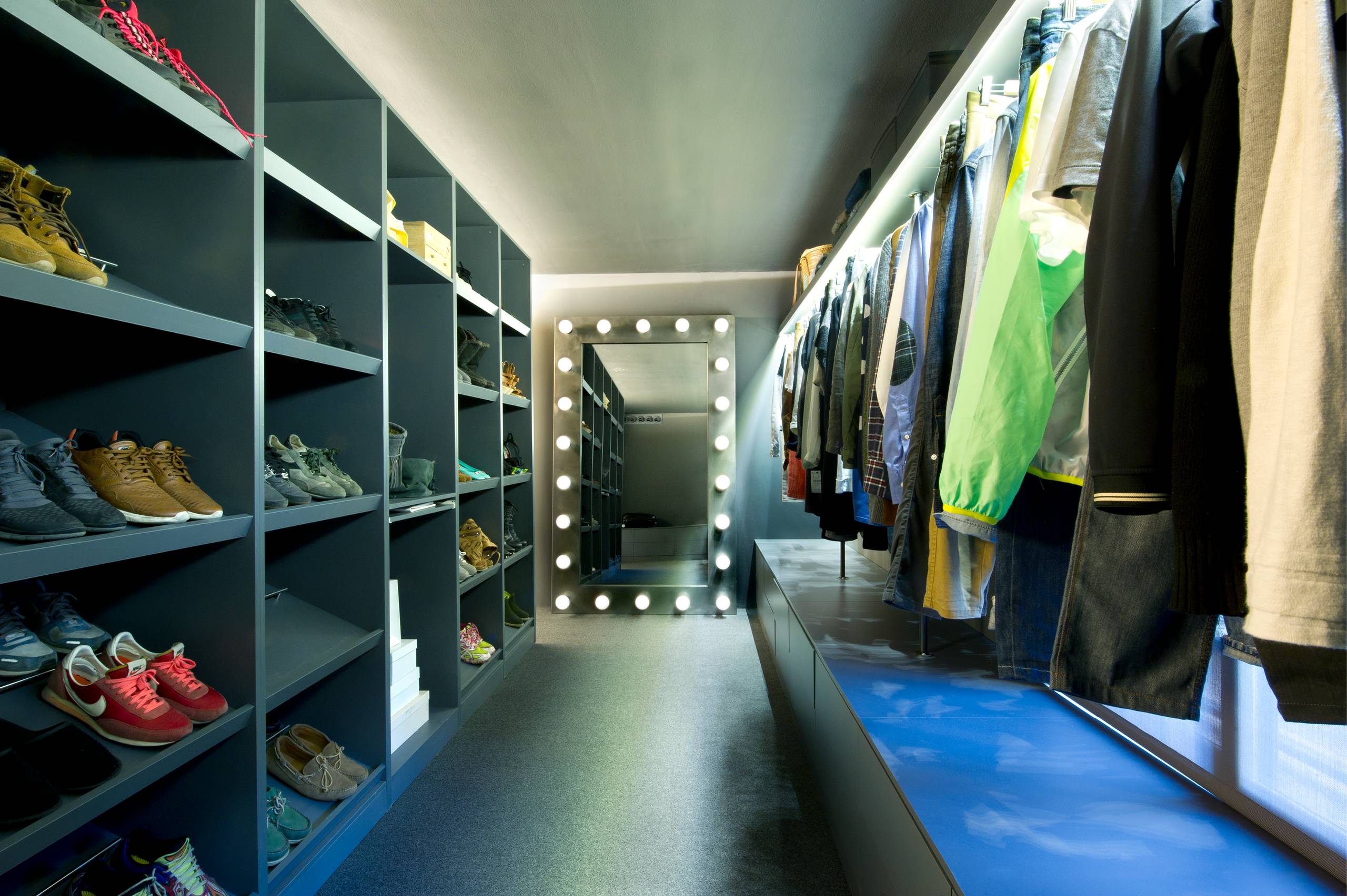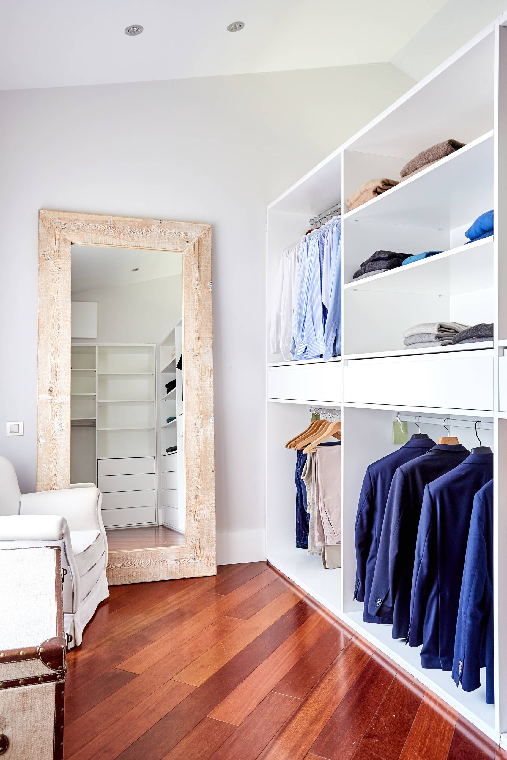 Espejos, tiras led o alfombras son algunos elementos que aportan orden visual a los vestidores.