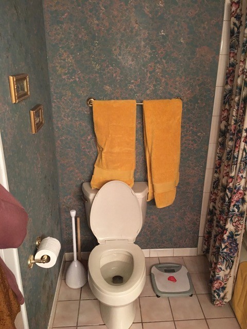 Mis padres habían superado lo del tocador para ella y el lavabo separado para él y para ella. Además, tirar la pared no parecía factible porque la chimenea, que se ve en el plano, estaba justo detrás del baño.
