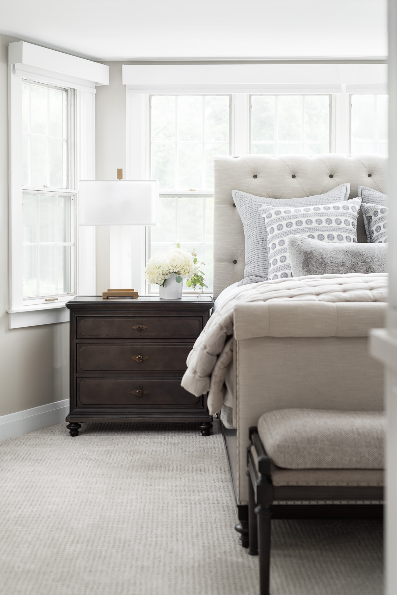 En la habitación remodelada, las ventanas enmarcan la cama nueva, “convirtiéndola en el punto focal del espacio”, cuenta Coe.