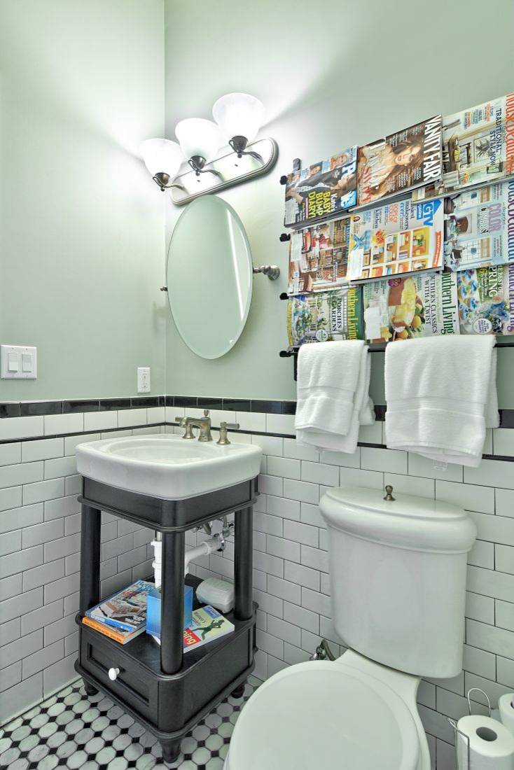 Otra manera de exponer las revistas en el baño es utilizando toalleros que funcionen como soporte.