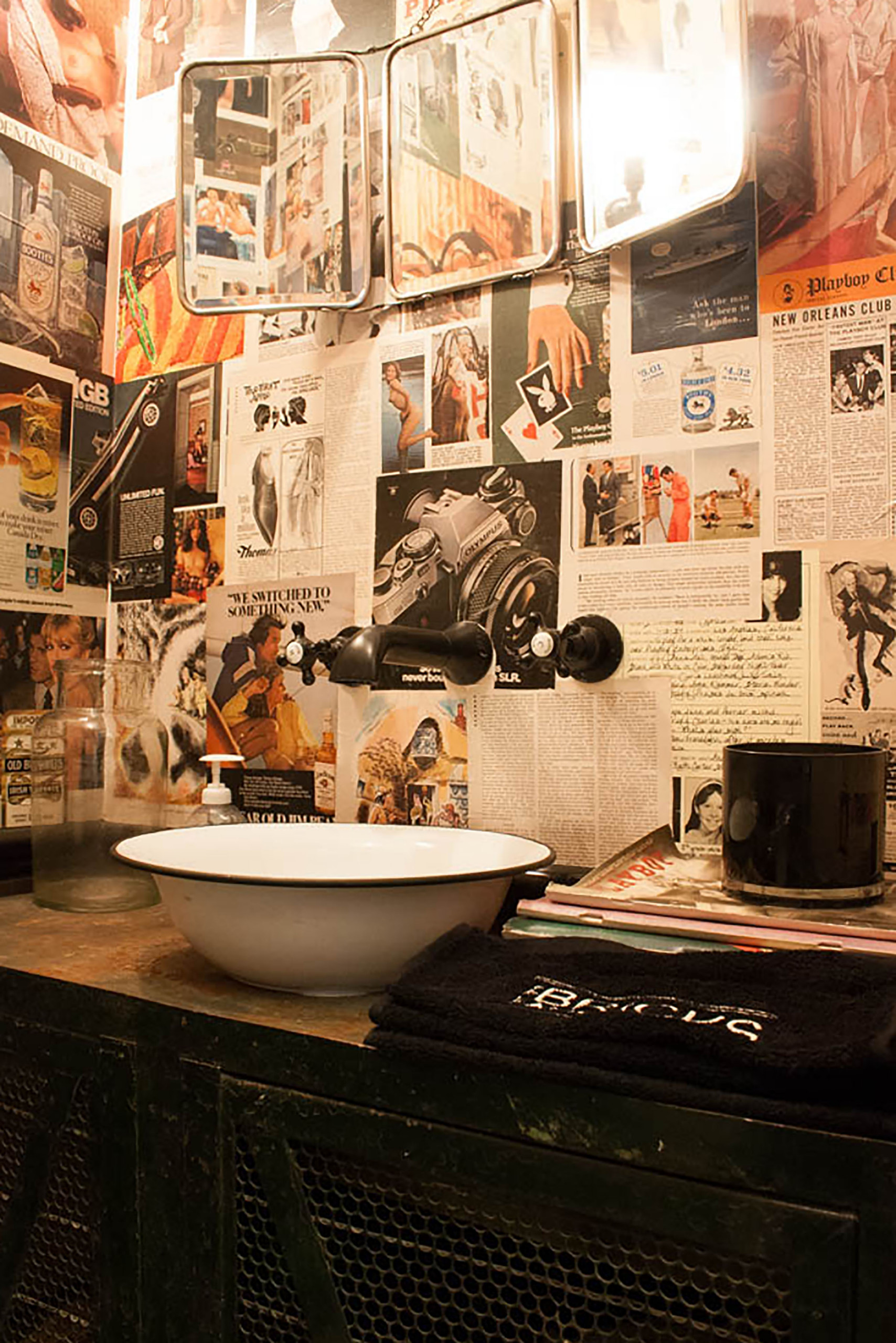 Como en un bar, decora el frontal de tu baño con recortes y páginas de revistas. Para realizar una pared de collage, se requiere paciencia, selecciona las fotos o temas que más te gusten, y mediante la técnica del collage, puedes decorar paredes enteras con sus páginas, en el baño, los pasillos, el rincón de lectura… Utiliza un pegamento especial y barniz para que resistan al tiempo y la humedad.