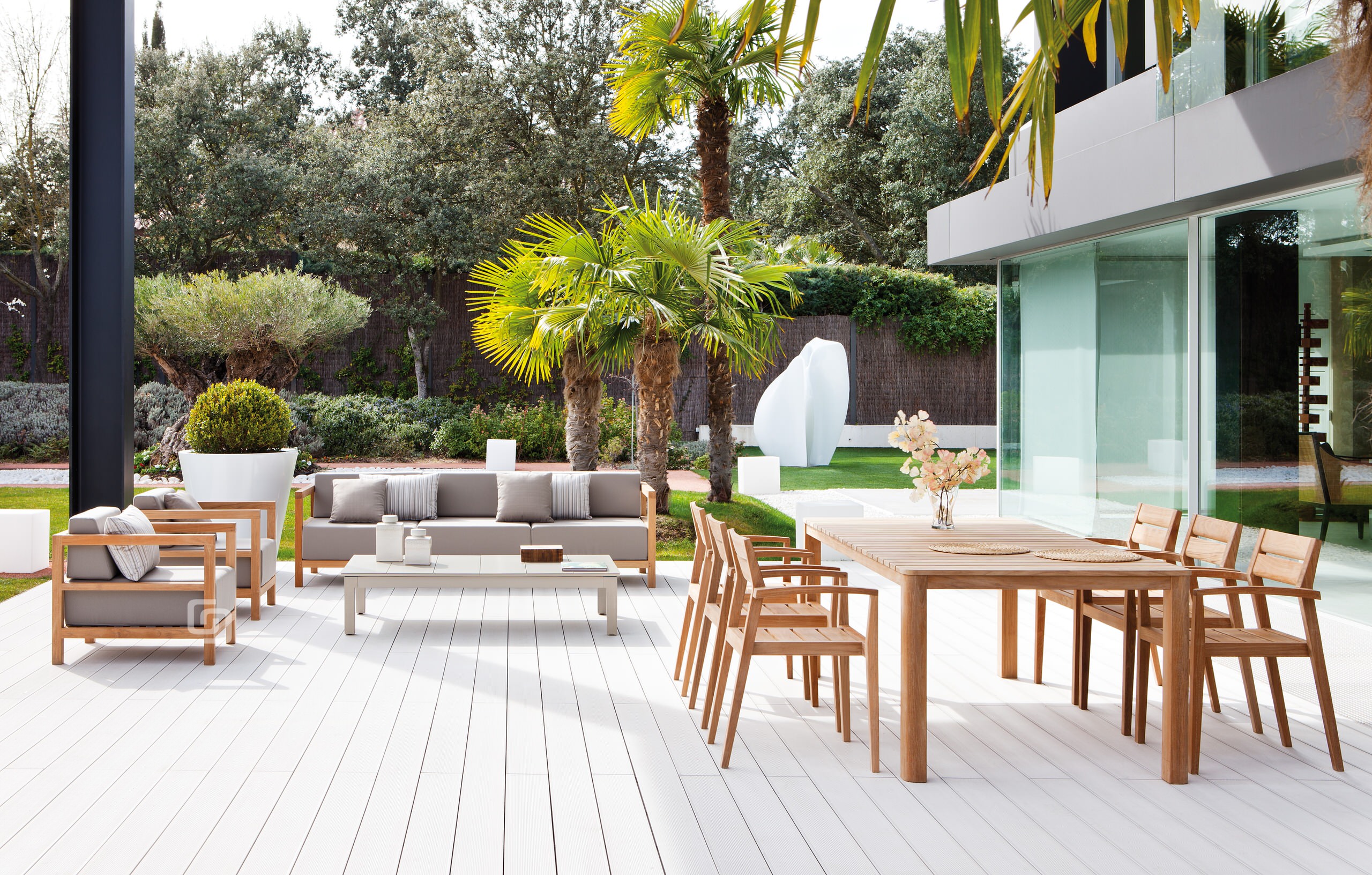 Benavente no lo considera el material más recomendable a pleno sol o en primera línea de mar: “en estas circunstancias, incluso una madera de teca de alta calidad, la más costosa, requeriría un mantenimiento muy frecuente para mantener su color original y no decolorarse o agrisarse”, dice el experto.