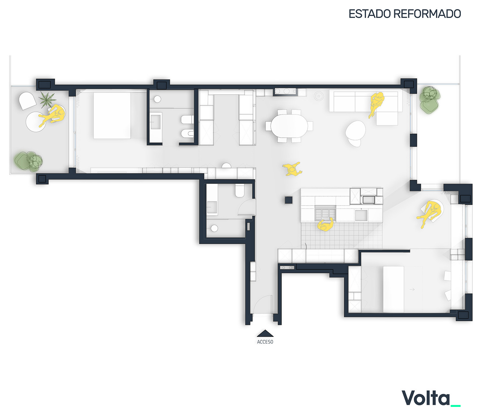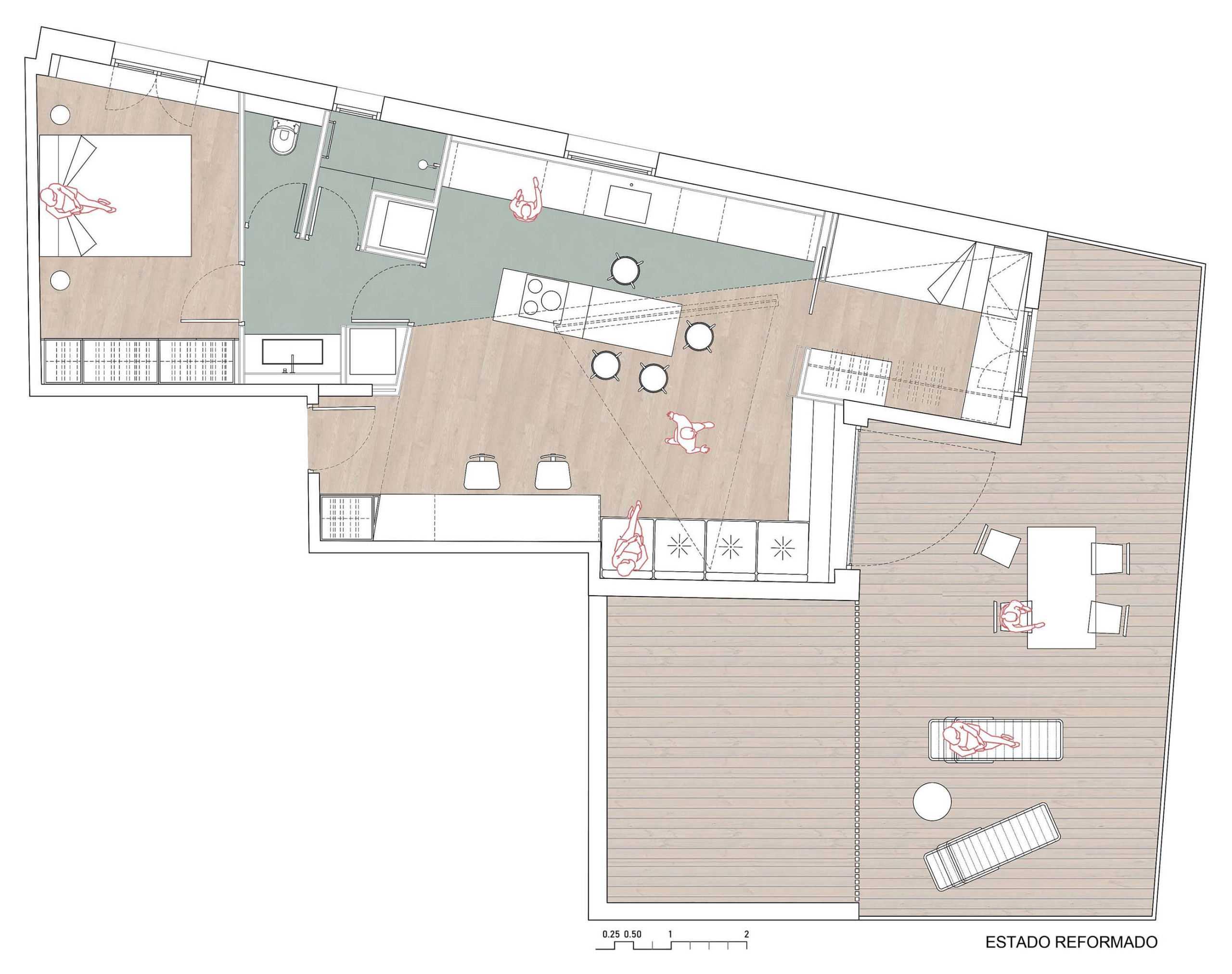 Plano del estado reformado de la vivienda diseñada por el estudio Volta_ en Alicante
