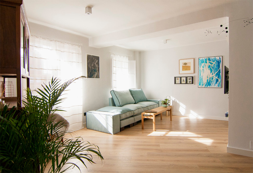 - Orientación. Si vas a colocar una zona de trabajo o la televisión, piensa en la orientación de tu salón para que la luz no sea escasa en el primer caso, ni demasiada en el segundo, por los molestos reflejos.
