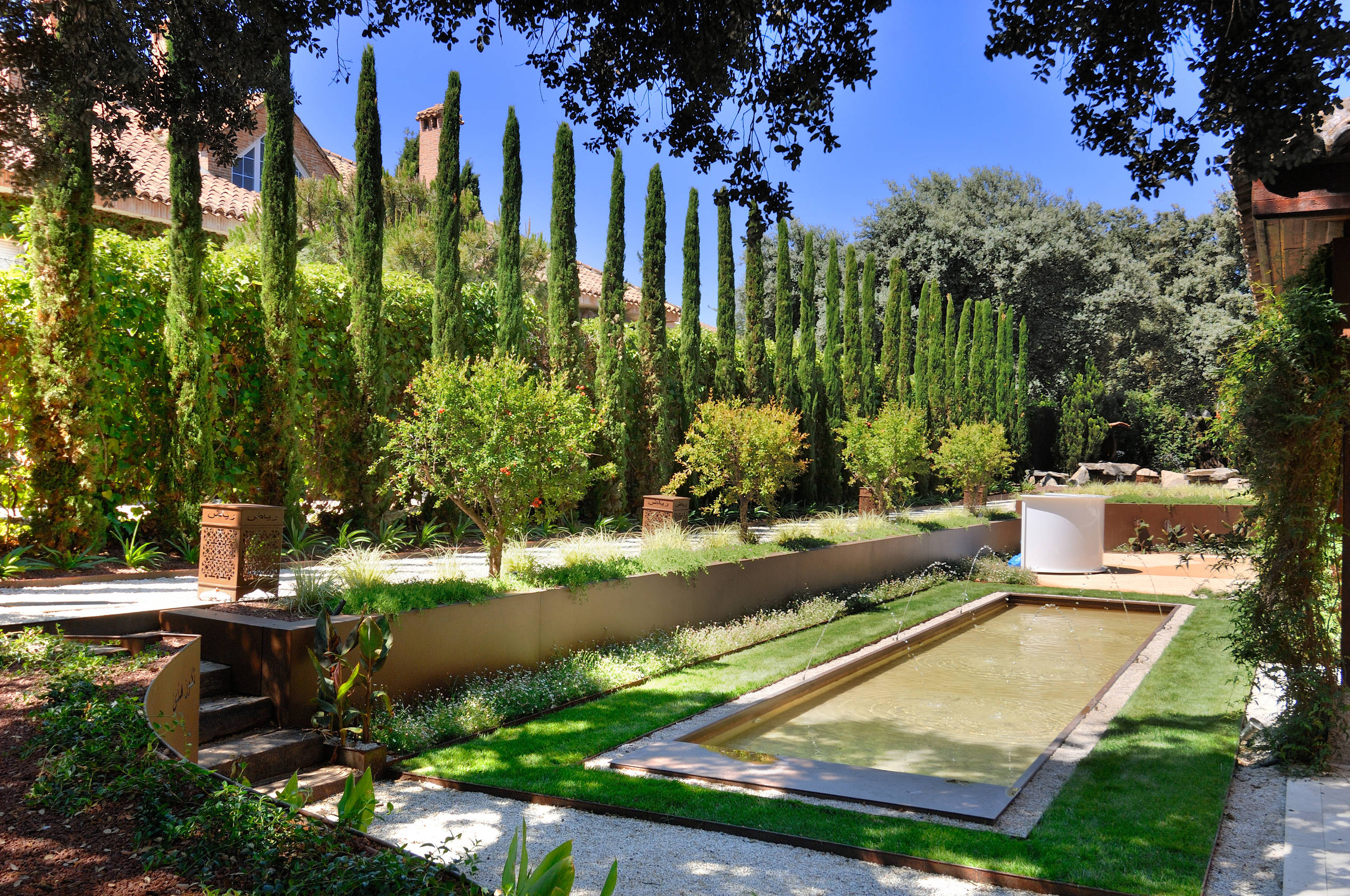 “Pondría porches, estancias apercolladas, fuentes y estanques con un uso laminar del agua que permitiera refrescarnos. También, habría plantaciones policromáticas con especies culinarias y comestibles, además de la potencia visual de grandes ejemplares frondosos, tilos, olmos, almeces y sicomoros, unidos a coníferas como el pino y el ciprés. No podría césped, que es típico del paisajismo inglés y poco recomendable en el paisajismo mediterráneo o hispano-árabe”.
