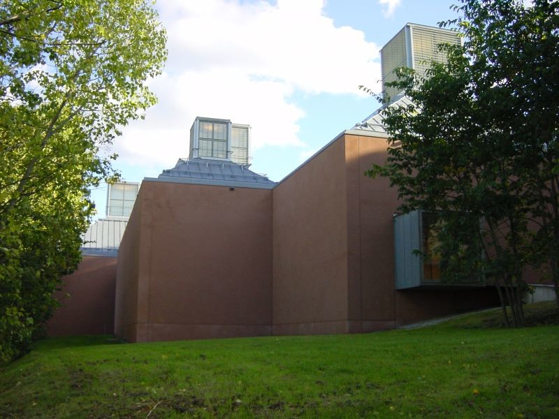 En el ala dedicada a Museo de Arquitectura, se produce un cambio radical de lenguaje: superficies blancas que remiten al movimiento moderno desde una perspectiva nórdica aaltiana.