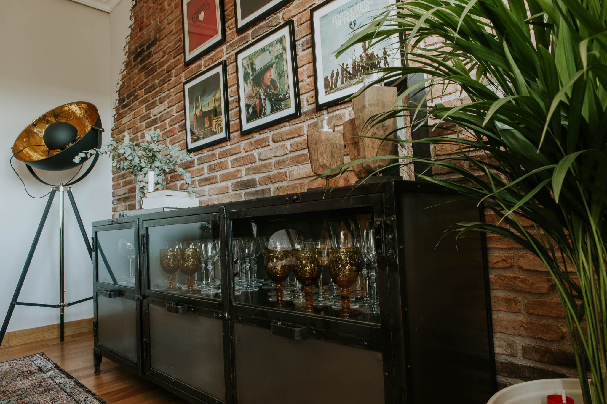 El aparador, de estructura de hierro y planchas de acero desgastado, acompaña perfectamente al resto de elementos de aire industrial.