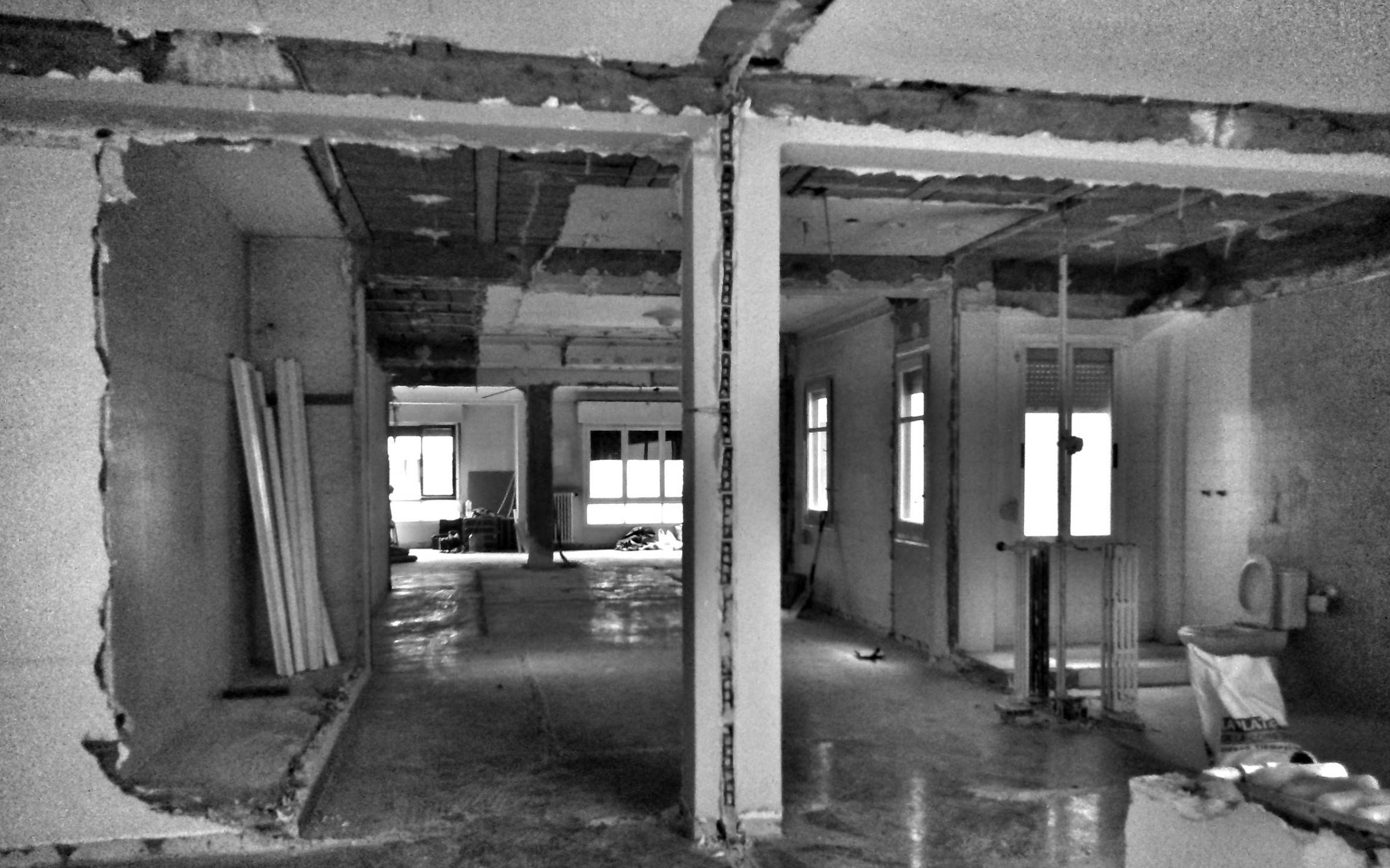 ANTES: En la foto superior se puede ver el largo pasillo de 11 metros que había en la casa y a que hacíamos referencia en el subtítulo de este artículo. La entrada al piso se encontraba al principio del pasillo, que daba paso sucesivamente a la cocina, al salón y al comedor, todos separados.