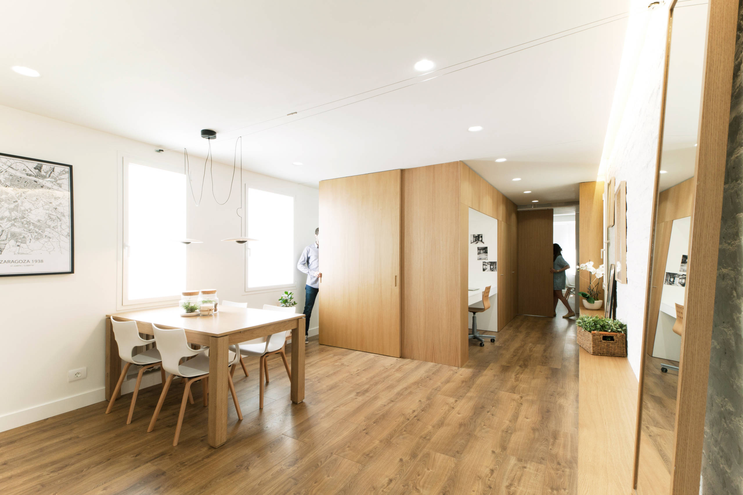 Este piso en Zaragoza tenía un pasillo de 11 metros que se ha transformado en una zona de día con mucha luz natural.