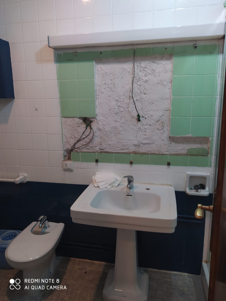 ANTES: en este cuarto de baño, la familia quería mantener el lavabo original. “Era necesario reformar el baño, pero quería mantener el máximo de los elementos cerámicos existentes: toalleros, ganchos, jaboneras y, sobre todo, el lavabo donde nos habían bañado a mí y a mis hermanos de bebés, y donde yo también había bañado a mis hijos 30 años después…”, comparte Trinidad.
