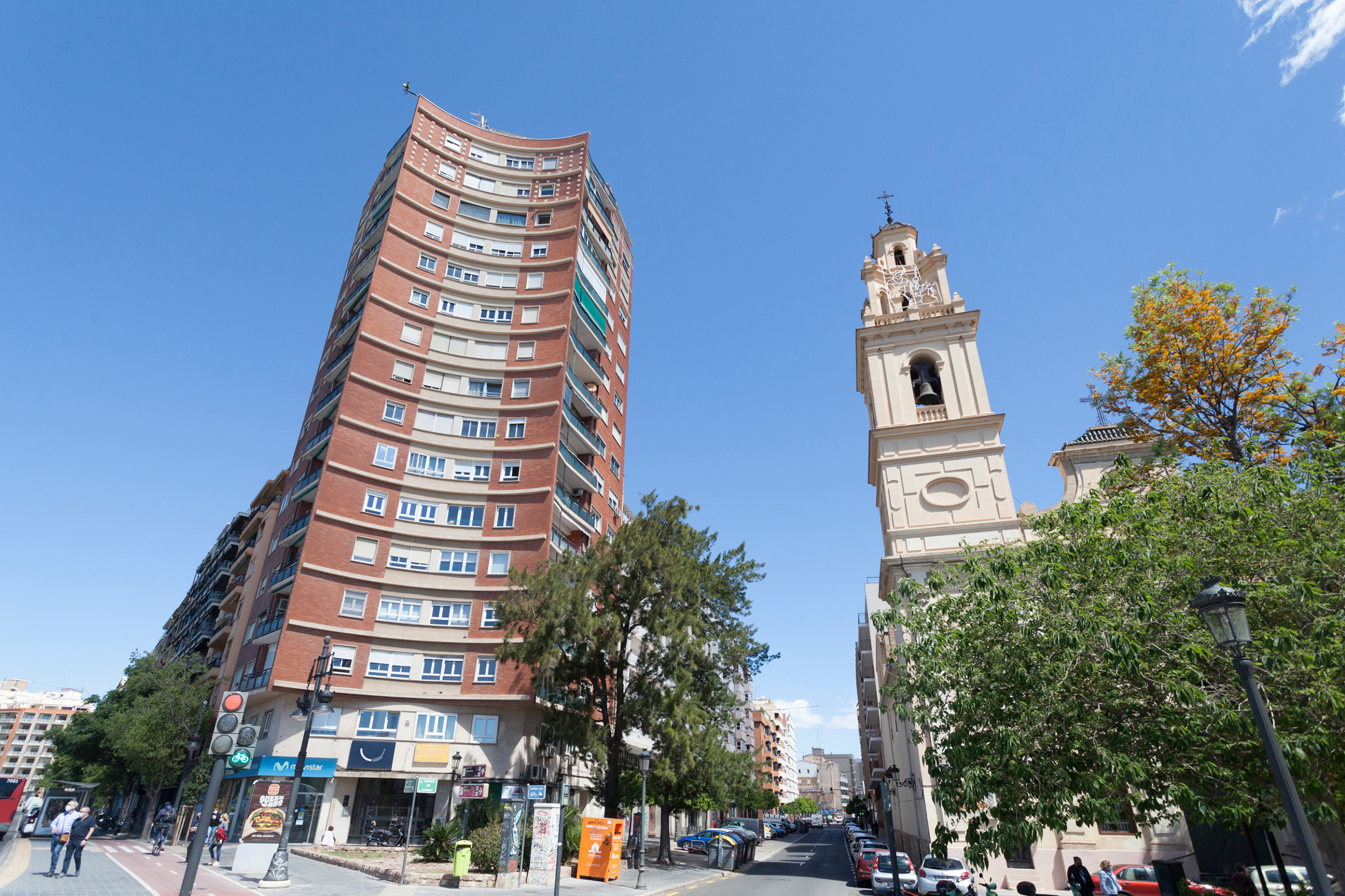 “La gente en Valencia conoce el edificio porque es llamativo. Está ubicado junto al antiguo cauce del río, frente a las Torres de Serrano (uno de los símbolos de la ciudad), al lado de la iglesia de Santa Mónica y una plaza llena de edificios antiguos de unas cinco alturas”, comparte la inquilina.