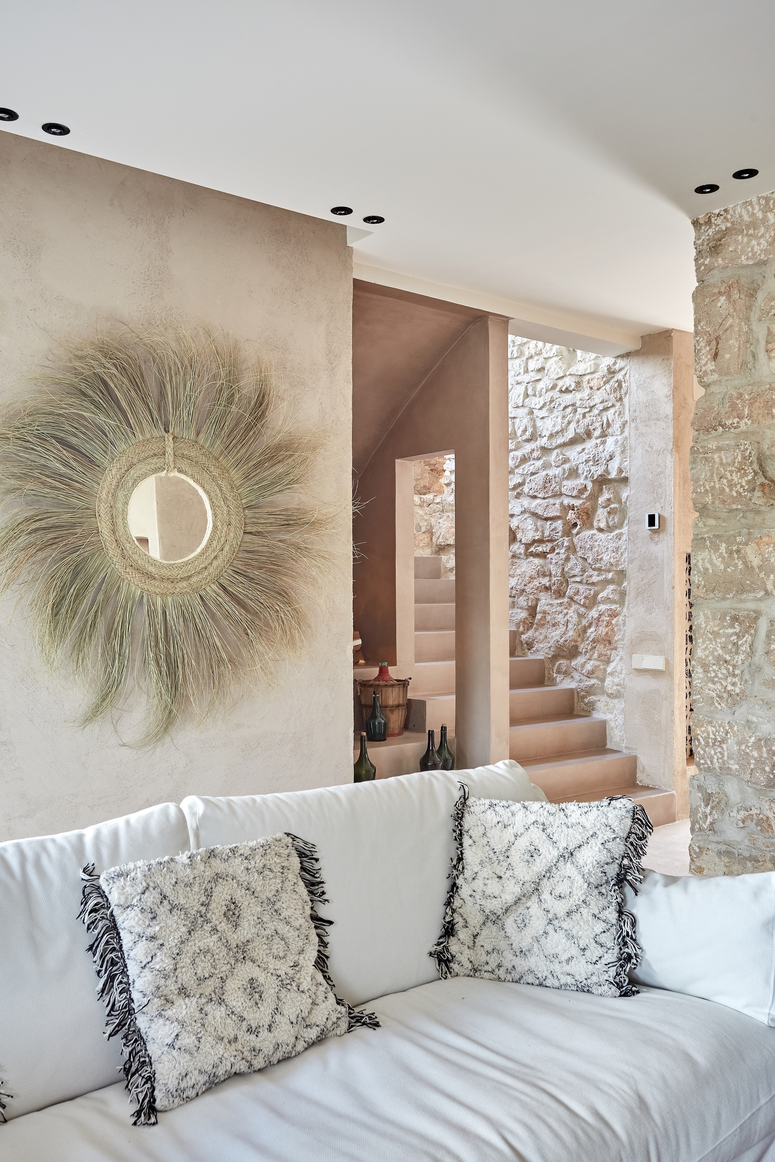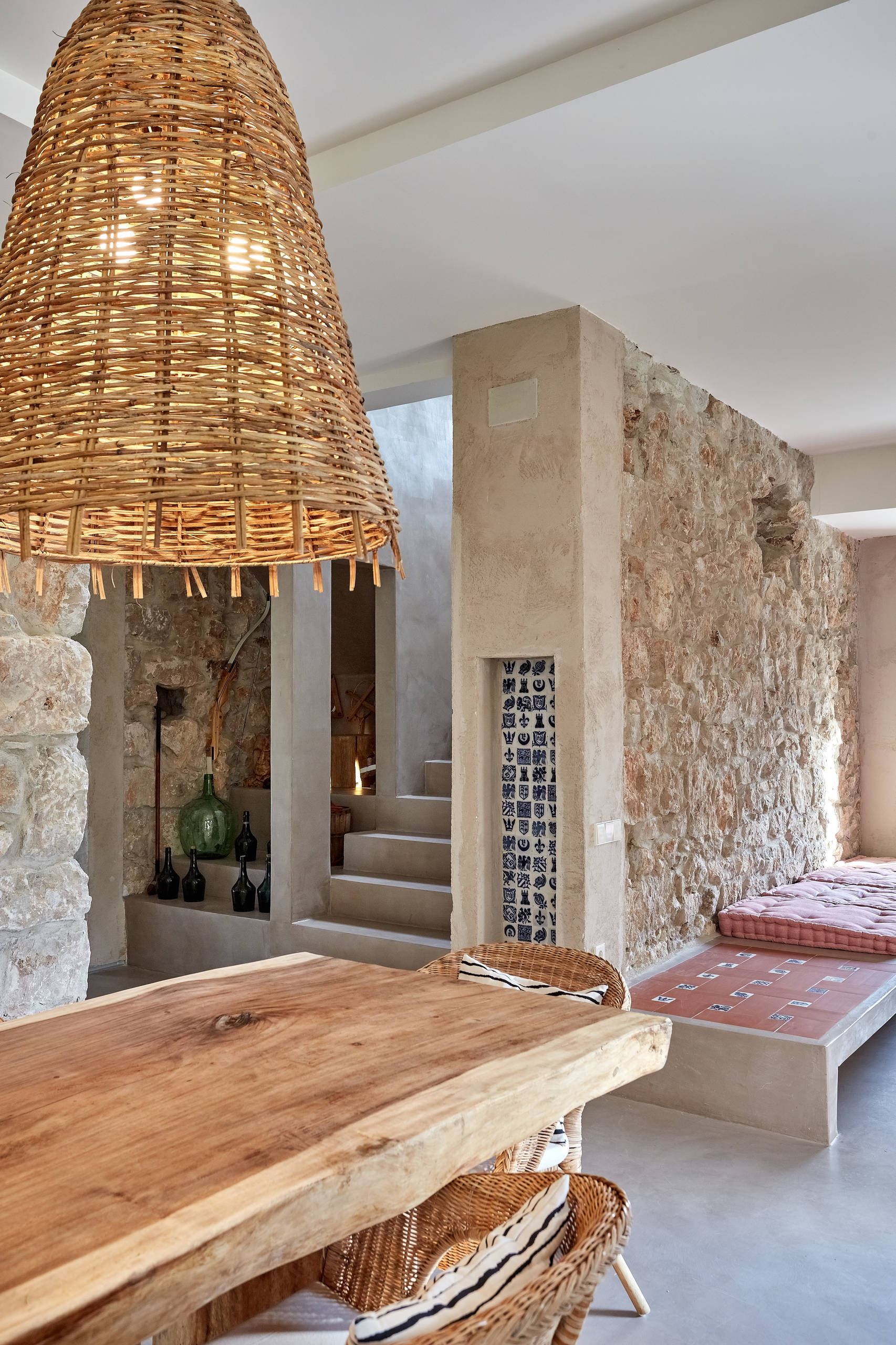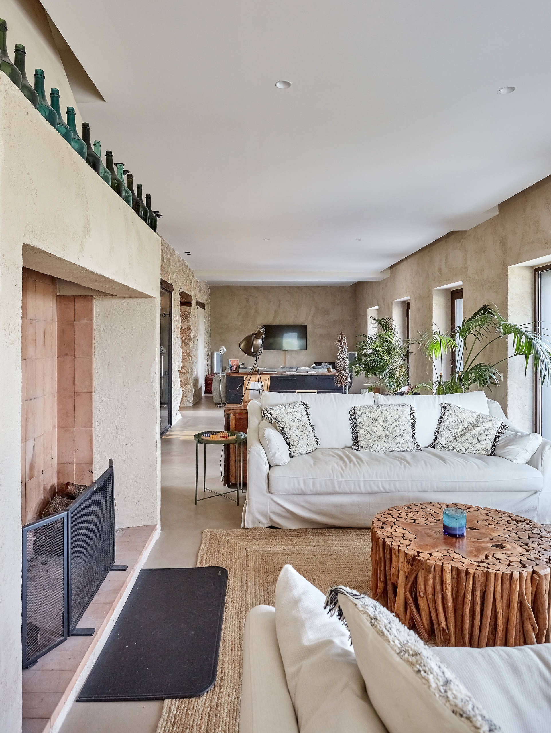 “Me gusta mucho la artesanía indonesia y aproveché para hacer un gran pedido de mobiliario y accesorios, sobre todo de madera y piedra. Asesorada por Mar he mandado fabricar muebles a medida. Definir el estilo de la decoración de la casa es difícil, pero diría que es una mezcla de estilo rústico y a la vez moderno”, comenta la dueña.