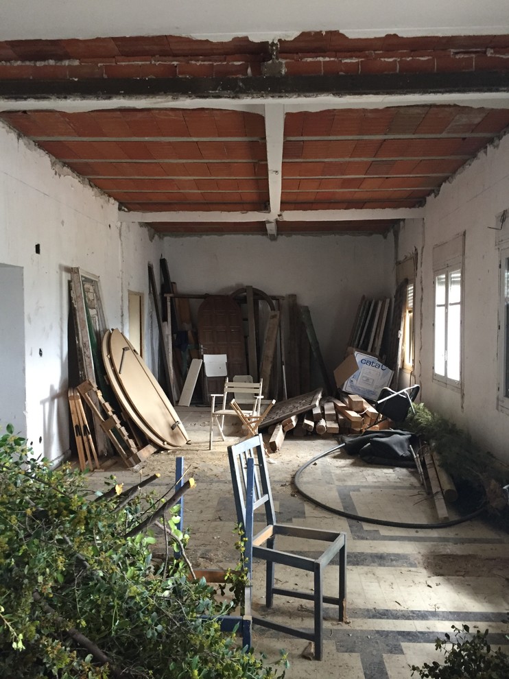 ANTES: “Así nos encontramos lo que hoy es el amplio salón. El muro de la izquierda tenía toda la piedra cubierta. Lo picamos para descubrirlo y darle carácter a la casa”, afirma el arquitecto