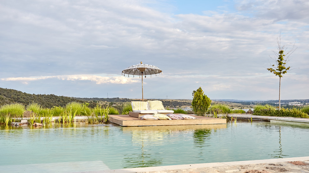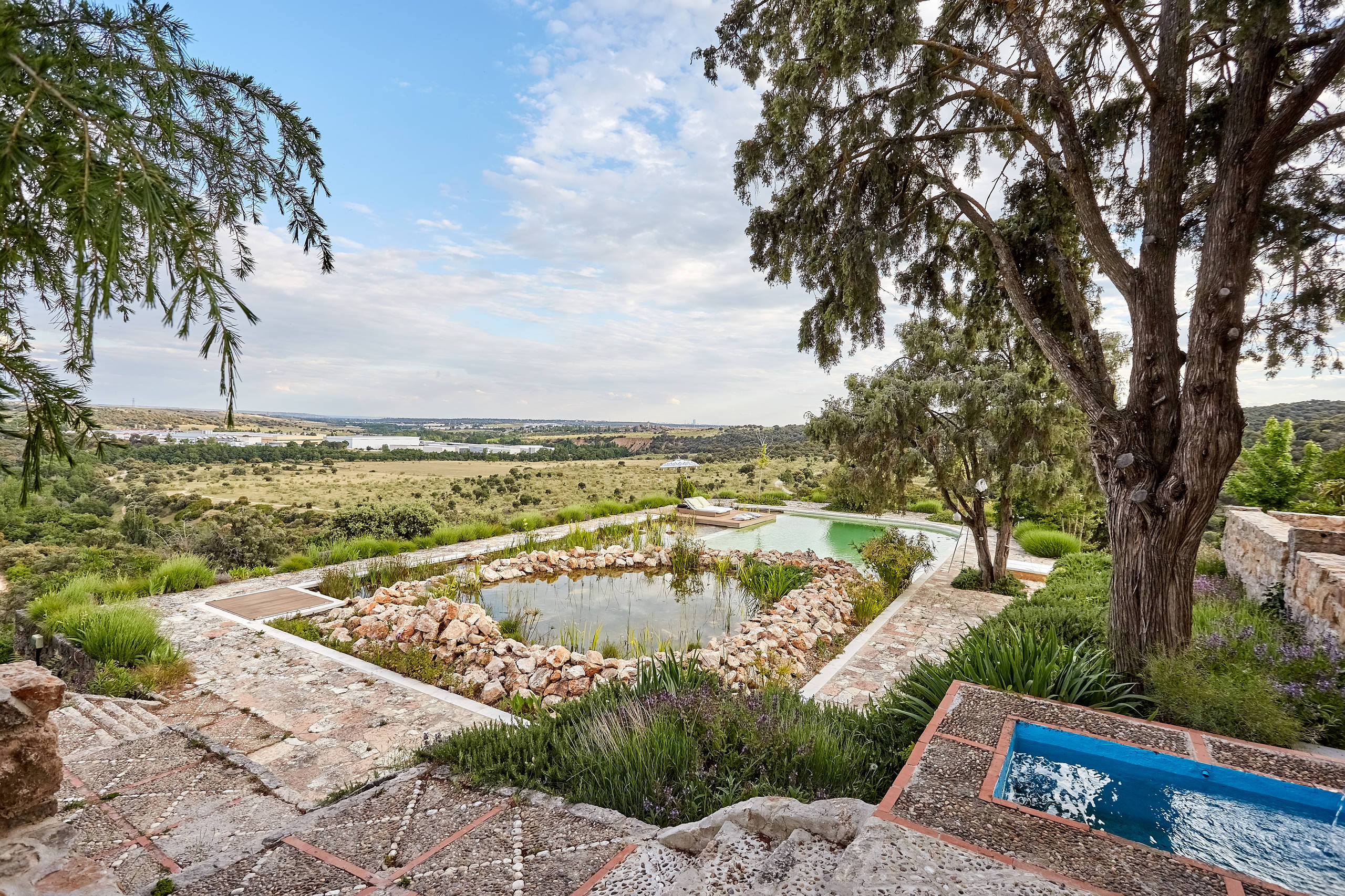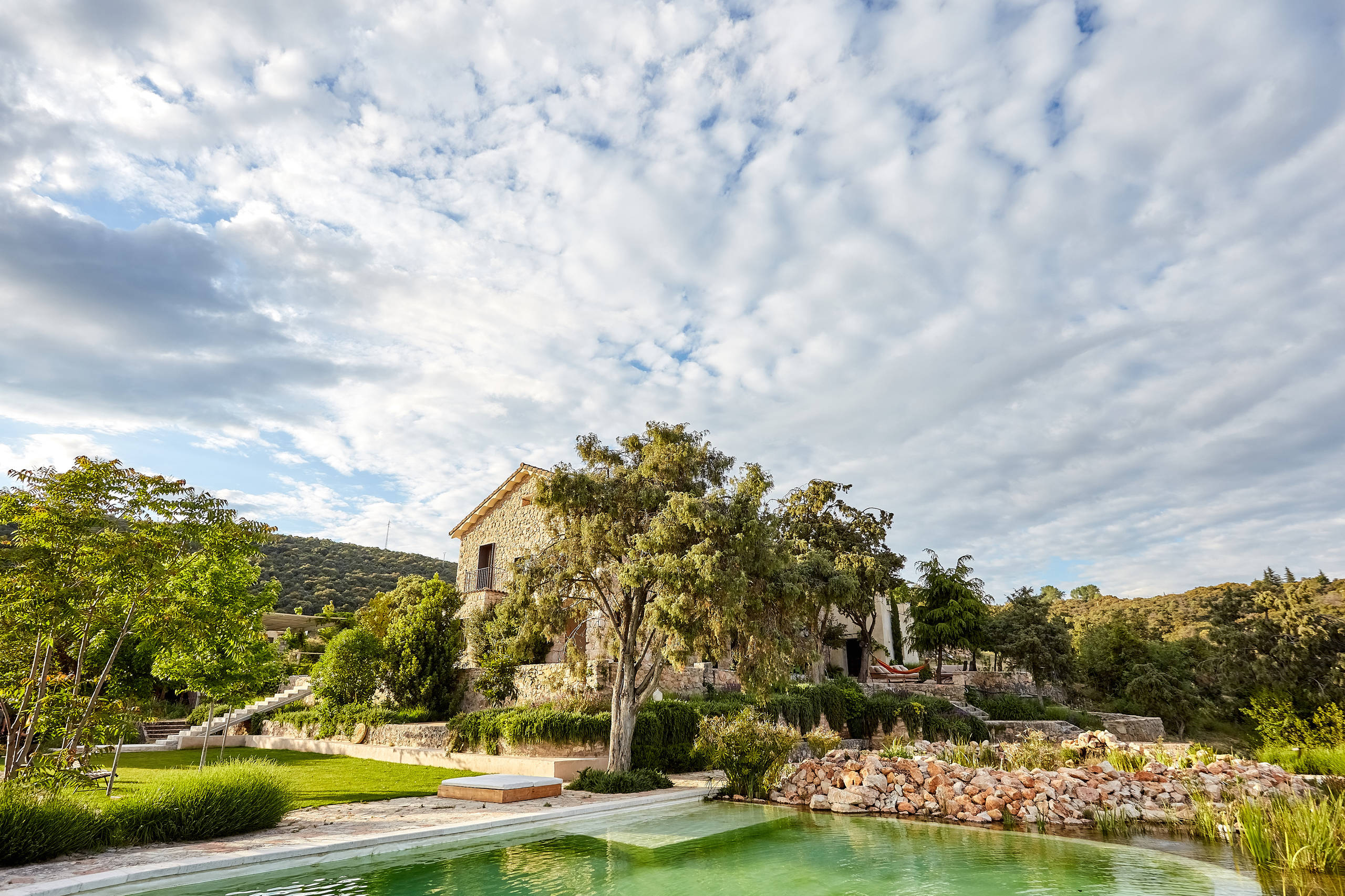 La piscina de agua natural se ha construido de tal manera que sus límites parecen fundirse con el entorno.